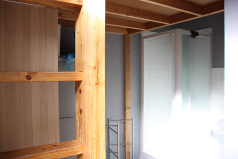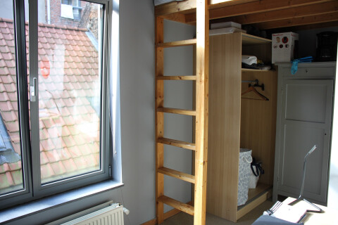 Kamer 3 is een gezellige kamer op de eerste verdieping. De kamer heeft een hoogslaper en eigen douche cel met lavabo. De WC en keuken deel je met enkele kot genoten op je gang. De kamer wordt verhuurd met een éénpersoons matras, boekenkast, kleerkast, bureau en bureaustoel.