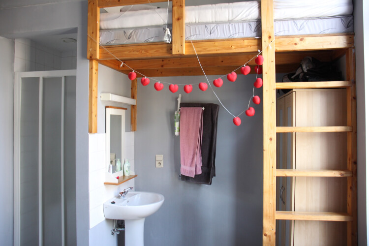 Kamer 4 is een gezellige kamer op de eerste verdieping van het gebouw. Je hebt een eigen douche cel met lavabo en je slaapt op een hoogslaper. De WC en keuken zijn op de gang en deel je met de kot genoten op je verdieping. De kamer wordt verhuurd met een éénpersoons matras, boekenkast, kleerkast, bureau en bureaustoel.