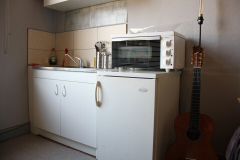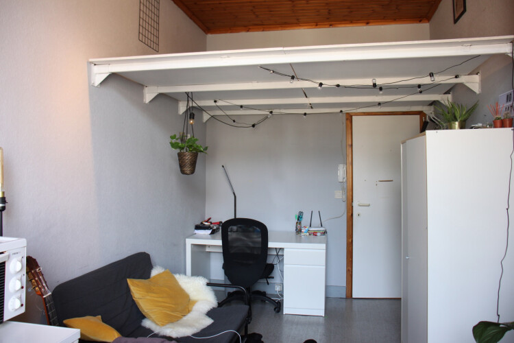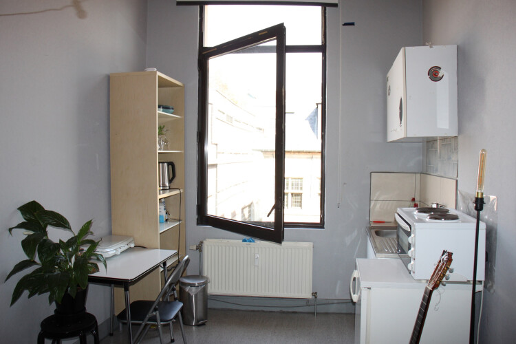 Kamer 13 is een mooie kamer aan de voorkant van het gebouw op de tweede verdieping. Ze heeft een hoogslaper en kitchenette. Je deelt de WC en badkamer op de gang met andere kot genoten. De badkamer werd in de zomer van 2019 volledig vernieuwd. De kamer wordt verhuurd met een éénpersoons matras, boekenkast, kleerkast, bureau en bureaustoel.