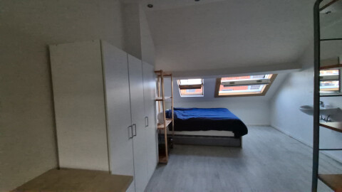 Zéér ruime kamer op derde verdieping met veel lichtinval. Je kan kamer volledig verduisteren. Gelegen op Antwerpen Zuid. Zeer rustig studentenpand. Je hoort bijna geen lawaai. Op 50 meter van tramhalte, 200 meter van hoofdingang KdG Campus Zuid en 300 meter van supermarkt. Gedeelde badkamer en toilet zijn gelegen op zelfde verdieping, maar worden amper gebruikt. Je hebt bijna privé eigen badkamer.