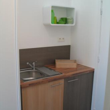 Jouw kot beschikt over een aparte badkamer met douche, toilet en wastafel. Wedden dat je je eigen ontbijtmeubel met koelkast en diepvriesvak de max zal vinden? Je kamer is trendy ingericht met een bed, lattenbodem, kleerkast, wandrek, bureau, zithoek, verduisterende gordijnen, LED verlichting, prikborden, hangrekjes... alles staat netjes voor je klaar.