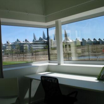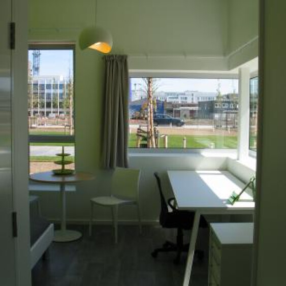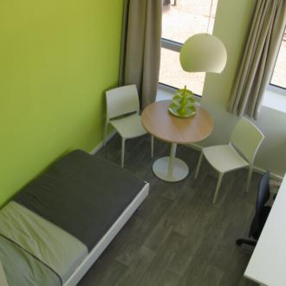 Studeer in stijl en met alle comfort in de nieuwbouwresidentie Nieuw-Zuid. Jouw kamer (18 m2) ligt op de gelijkvloerse verdieping op het einde van een gang (rustig). Het extra hoge plafond en het hoekraam met uitzicht op de tuin en het nieuwe gerechtsgebouw zorgen voor wat men noemt ‘a room with a view’.