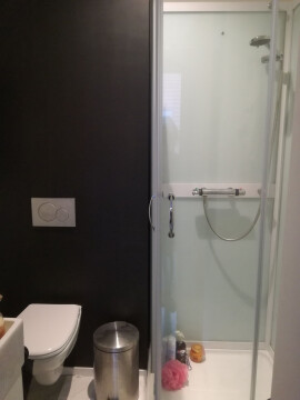 - Eigen badkamer met gloednieuwe douche, eigen WC en lavabo met spiegel en kastje
