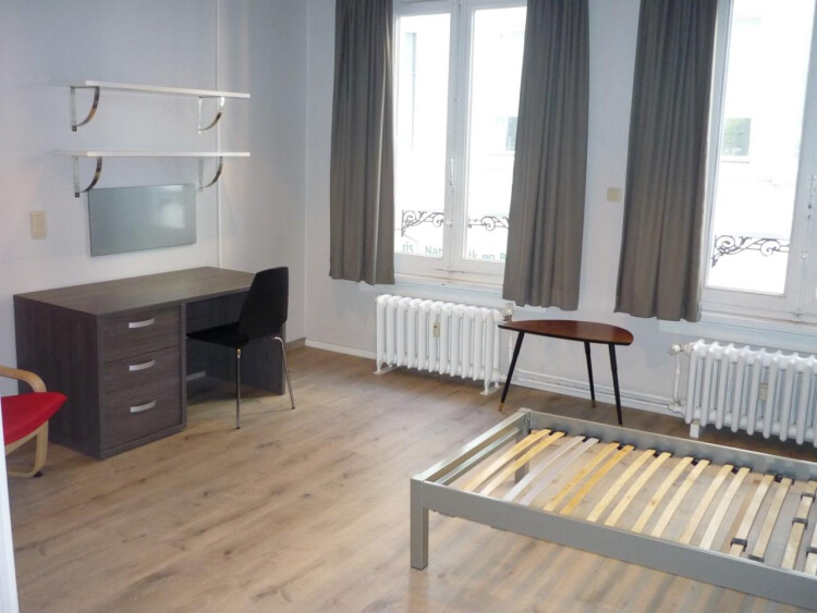 Op elke verdieping, 3 in totaal vind u bij ons telkens dezelfde structuur; 2 kamers aan de voorzijde, 1 aan de achterzijde. 1 gemeenschappelijke keuken per verdiep en 1 toilet op de gang per verdiep.