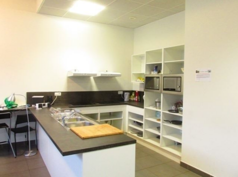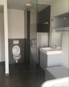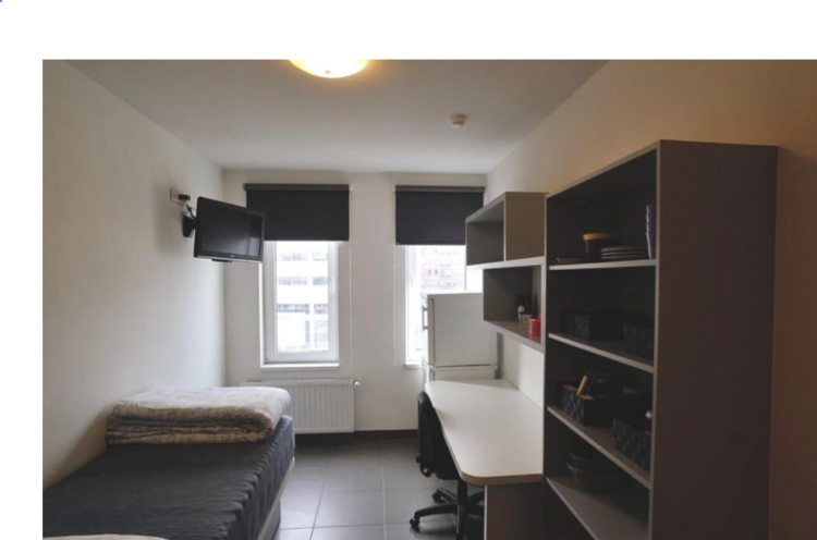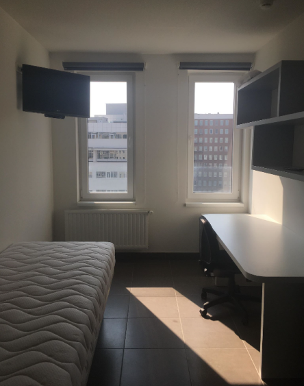 Het kot is gelegen op de tweede verdieping. Je hebt een eigen badkamer en toilet. De keuken is gemeenschappelijk.